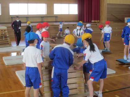 運動だけではなく、準備や後片付けも大切な学習です。