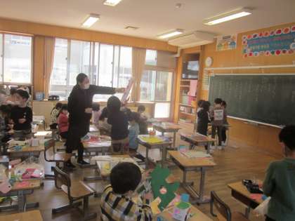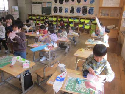 箱や手袋、ストロー等を使って動きのある作品をつくっています。