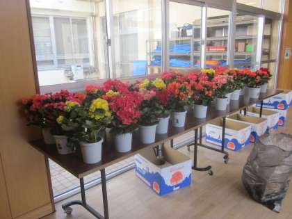 卒業式と入学式に飾るベコニアが届きました。PTAからいただきました。ありがとうございました。