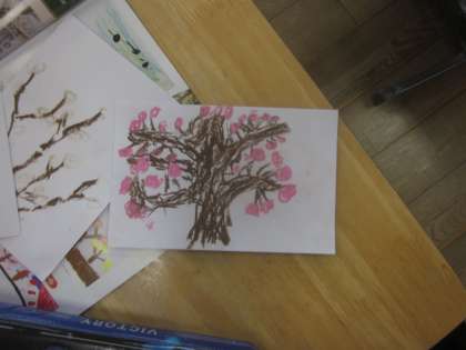 春の花や木を描きました。 桜やチューリップが多かったです。