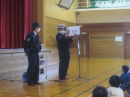 開校式です。富山中央警察署の方から歩く際に気を付けることを教えていただきました。