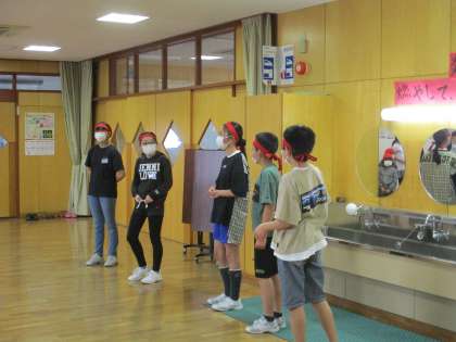 これまでの団活動での練習の成果を発揮し、スローガンに込められた思いを語ったり、応援の練習をしたりしました。初めての全学年集まっての活動を終えた子供たちは、振り返りの際、嬉しかったこと、楽しかったことをたくさん話し合っていました。