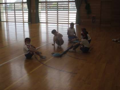 今日は運動会で行う「台風の目(仮称)」の並び順や作戦を考えました。