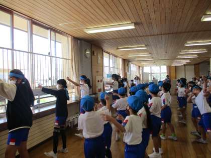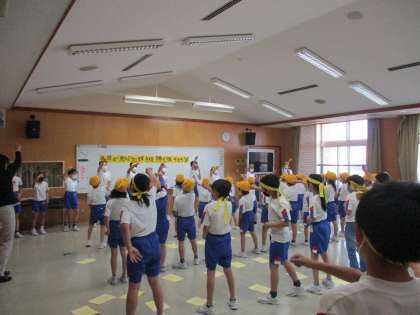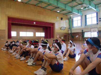 それぞれの団の持ち味をいかした応援の内容になってきました。上学年がリーダーとしてみんなを引っ張り、下学年は声や振り付けで一生懸命盛り上げています。全学年の力を合わせて頑張っています。