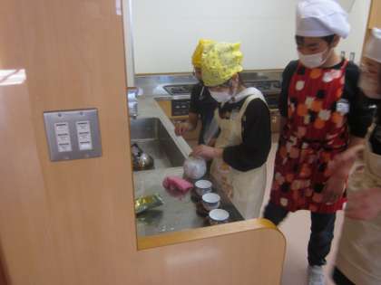 家庭科の時間にお湯を沸かして、お茶を入れました。金平糖とともにいただきました。