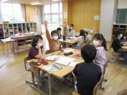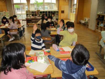 ゴールデンウィークの出来事や家で飼っている生き物など、友達に伝えたいことを発表し、質問し合いました。「いつ」「なぜ」「どのように」などいろんな角度から発表を聞き、楽しんで質問することができていました。