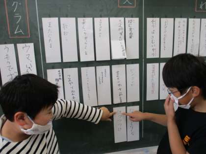 言葉遊びの説明文を学習し、「しゃれ」「回文」「アナグラム」をたくさん見つけました。