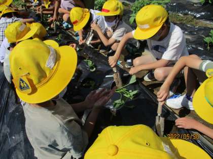 5/30(月)2年生 さつまいもの苗を植えたよ!