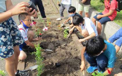 クラスの花壇に花を植えました。花が大きく育つようにみんなで育てていきます!