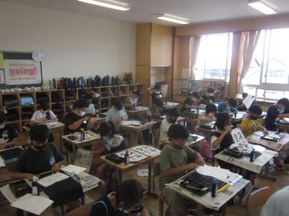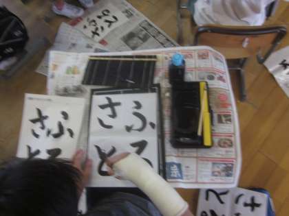 点画のつながりと字形を意識して「ふるさと」を書きました。