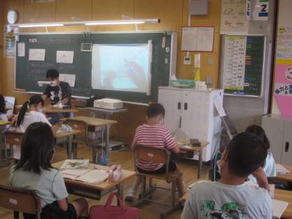 算数科で分度器を使って角度を測っています。 分度器の扱い方にも慣れてきました。
