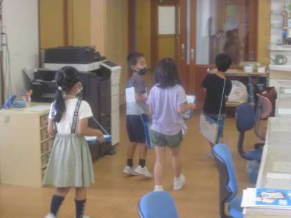 2限目に学校を探検しました。はじめて校長室や職員室に入りました。