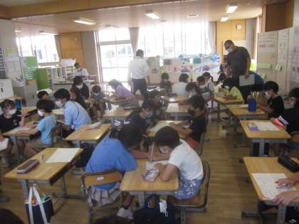 3時間目に3年2組で授業研究を行いました。子供たちは自分の考えをしっかりともち、考えを伝えていました。