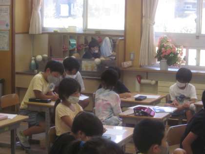 3年1組の校内授業研究でした。ゴムの力で車を走らせます。子供たちは疑問に思ったことを率直に話していました。