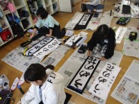 筆の持ち方、正しい姿勢で集中して筆を動かしています。