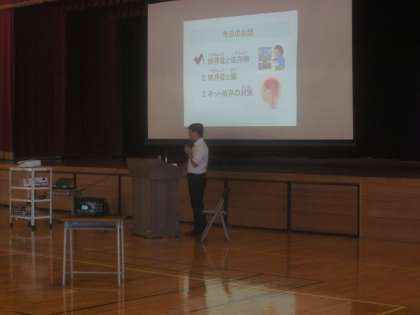 「メディアコントロールで心もからだも健康に」をテーマに行いました。保健委員会の発表の後に富山大学の山田正明先生の講演を聴きました。
