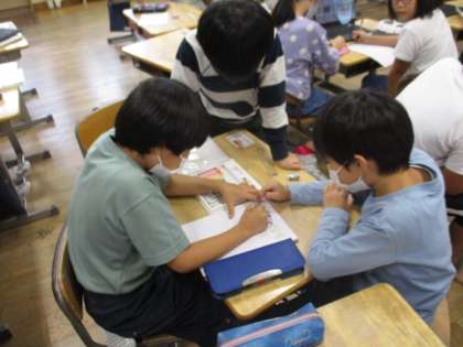 今日は、自分たちがもっと頑張りたいことを話し合い、学年全体に呼びかけるためのポスターをつくりました。