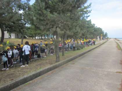 3年ぶりに全校児童で大村海岸清掃を行いました。