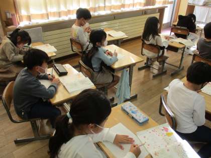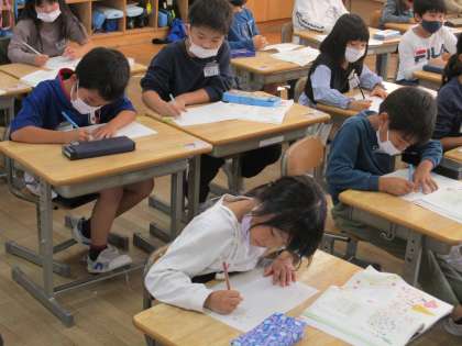 詩を丁寧に視写しています。秋の言葉をたくさん学習しました。