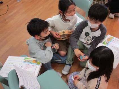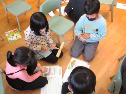 班の友達と考えを出し合いながら、「かぼちゃ」を演奏しました。
