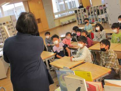 富山市立図書館 大広田分館さんから司書さんが来校され、ストーリーテリングとブックトークをしていただきました。