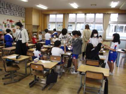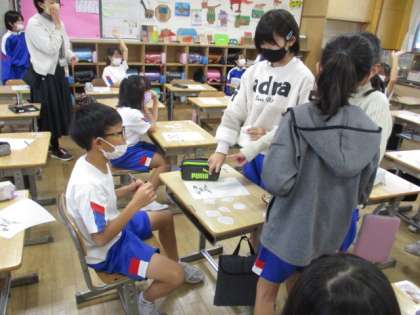 お気に入りのパフェをつくるため、英語でコミュニケーションをとりながら材料を交換しました。