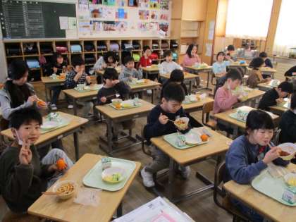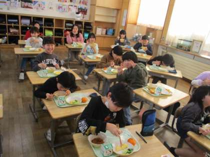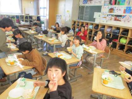 みんなで食べる久しぶりの給食はとてもおいしかったです。