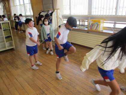 体力つくりでは、縄跳びをしています。記録を伸ばそうと頑張っています。