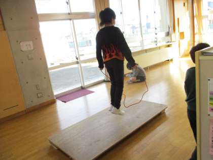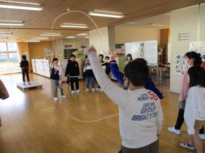 縄跳びでいろいろな技に挑戦。仲間と協力しながら、楽しく体力作りをしています。