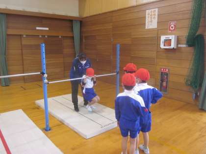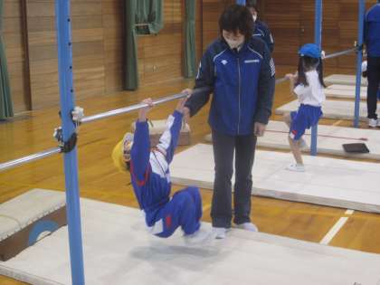 富山市体育協会から3名の先生が来られて、鉄棒のコツを教えていただきました。