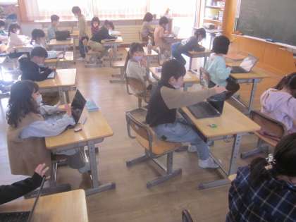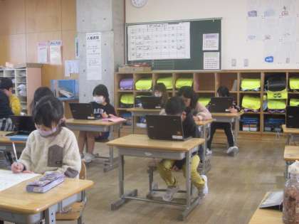 算数科ではプリント学習を終えるとクロムブックでクラウド教材を使用して復習しました。操作も手慣れたものです。