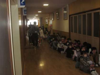 地震からの津波を想定した訓練を行いました。しゃべらずに取り組めました。