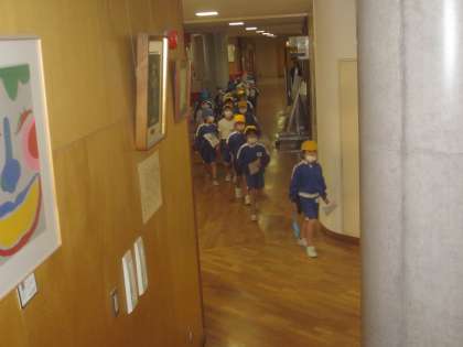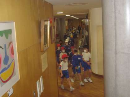 体育の時間の後、しっかりと並んで教室に戻っています。