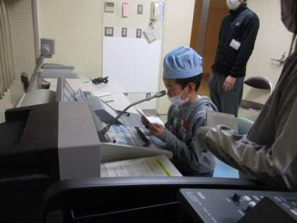 給食の献立紹介や、掃除のお知らせの全校放送をがんばりました。