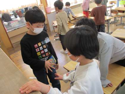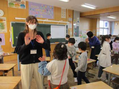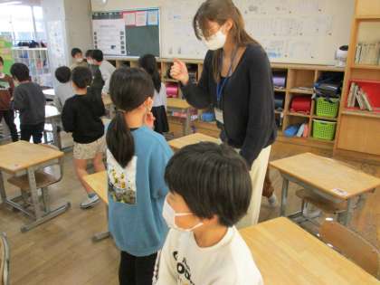 ALTに教室に来ていただき、英語のあいさつを練習しました。元気に「Hello!」声を出したり、英語でじゃんけんゲームをして楽しみました。