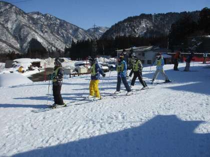 スキー板をハの字にする練習やリフトの乗り降りの仕方など、基礎的なことからおさらいしています。