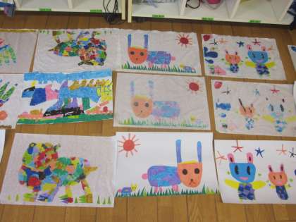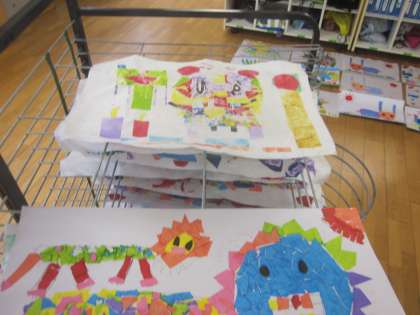 2年生の版画もできあがりました。色の使い方を工夫しました。