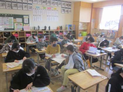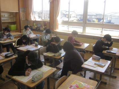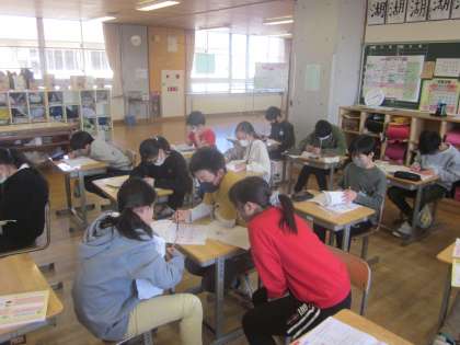6年生はドリルやプリントを使って、6年間の復習をしています。