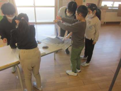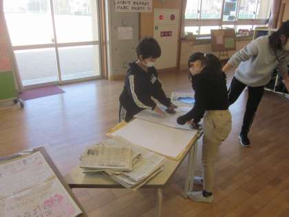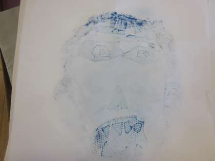 自分の顔を版画にしました。一人一人の表情がとてもよく、特徴がしっかりと表現されていました。