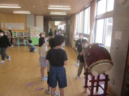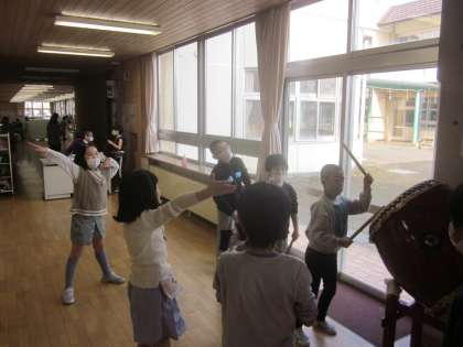 朝から太鼓を使って6年生にエールを送る練習をしています。学習発表会でも使用した太鼓!太鼓が似合う3年生!