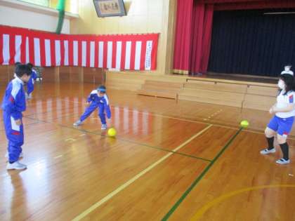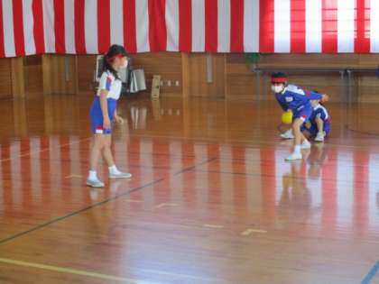 チームごとに声を掛け合い、白熱した試合を行っています。