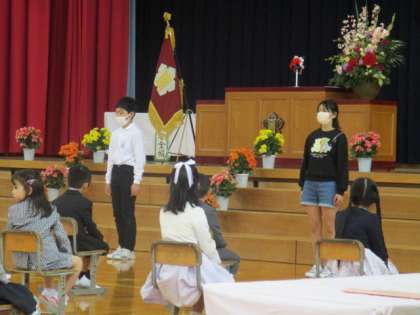 6年生4名が歓迎の言葉を述べました。