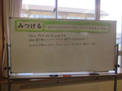 3年生の学年目標は「みつける」です。自分のよさや友達のよさを見付けようと毎日頑張っています。