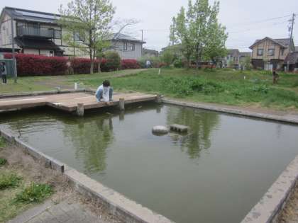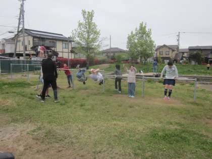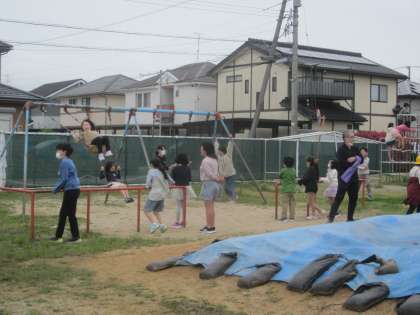 ブランコやジャングルジムで遊んだり、池を眺めたりと、思い思いに過ごしています。