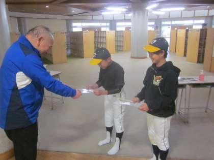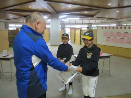 今日の放課後、大広田ホークス(野球)の2人が、部員募集のチラシとお試し会のチラシを持ってきてくれました。