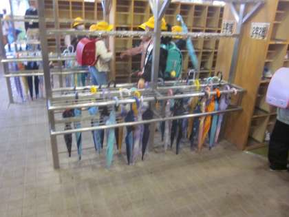 傘をしっかりとまとめることができました。傘置き場は整然としています。
