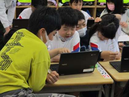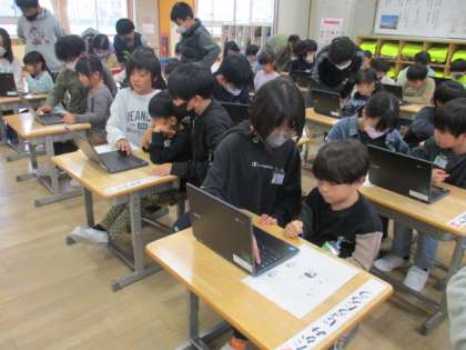 今日は、6年生と一緒に1年生のクロームブックの設定を行いました。作業の合間に楽しく話をするなど、笑顔いっぱいの1時間になりました。