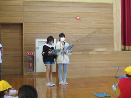 にこにこグループ発足式を行いました。6年生が中心となってグループで活動しました。