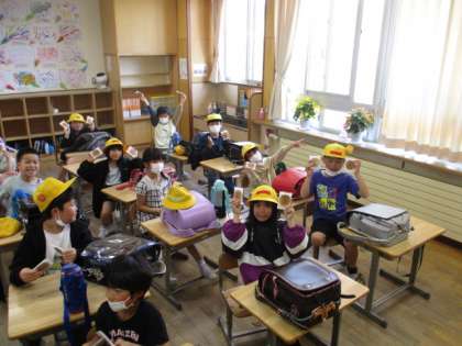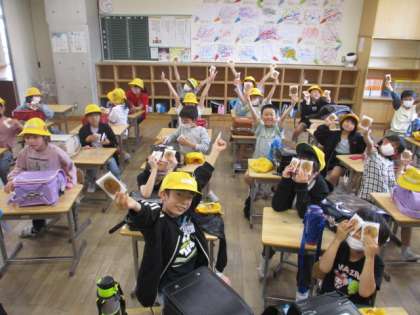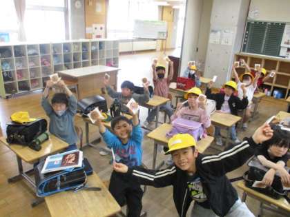 記念式典が終わった後、全校に大広田小学校の焼き印が入ったお菓子が配られました。とっても嬉しそうです。