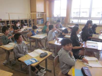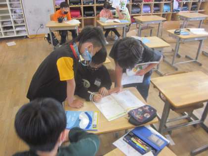 少人数で学習しました。早く終わった子供たちは、優しく友達に教えていました。